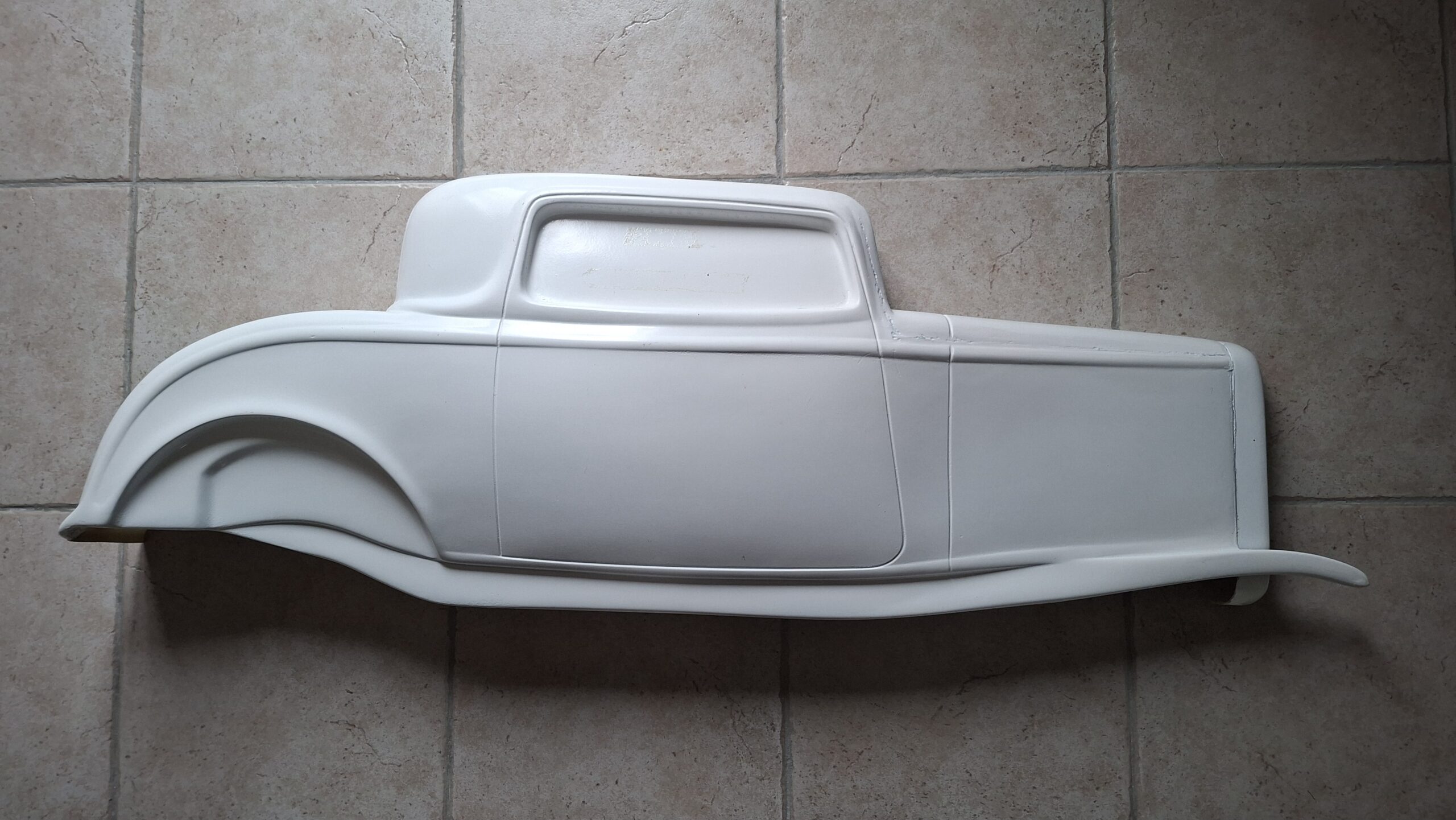 - 1) Caisse de Ford 32 coupé Hot rod en polyester, éch 1:3,5